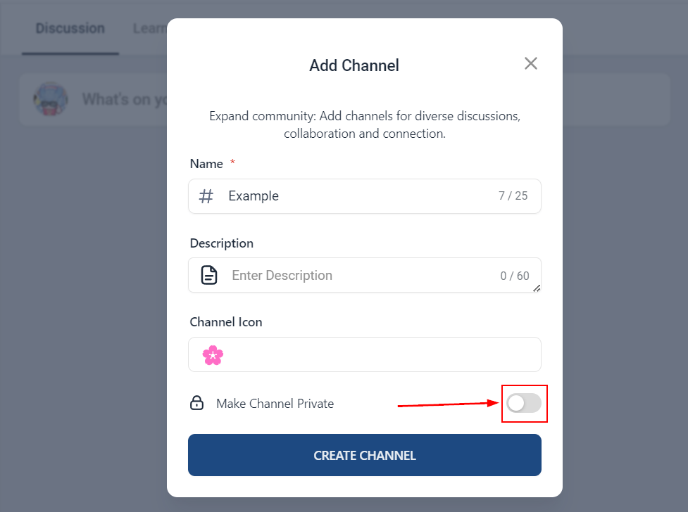 Start by logging into your community. You can create private channels or convert existing channels if you're a group admin or an owner.