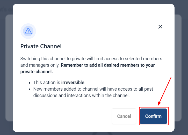 Inside the pop-up window access the settings. Click on Change to Private Channel and then click Confirm.