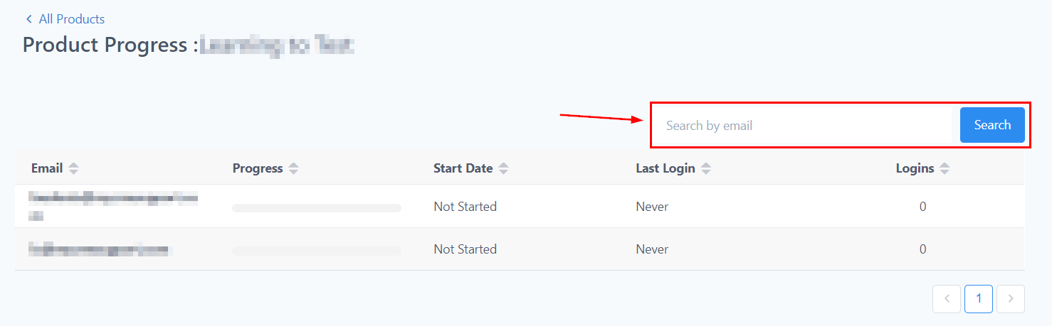 In this section, you will be able to view the progress of each of your courses and assessments. You can see their progress level (in percentage), their first login date and time, the last time they visited the product, and the number of times they logged in.
