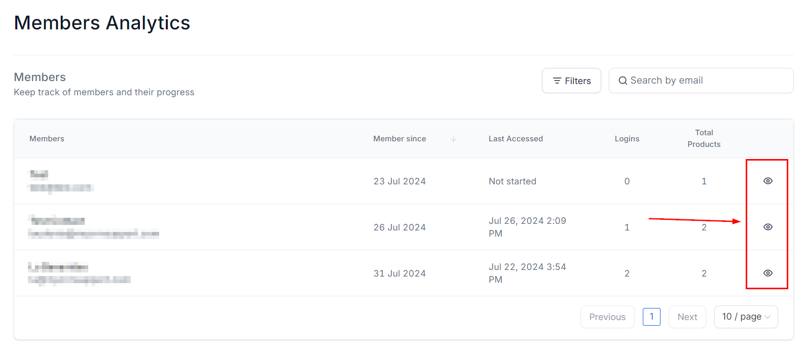 If you want a detailed view of how each member is progressing through the course, you can click this icon.