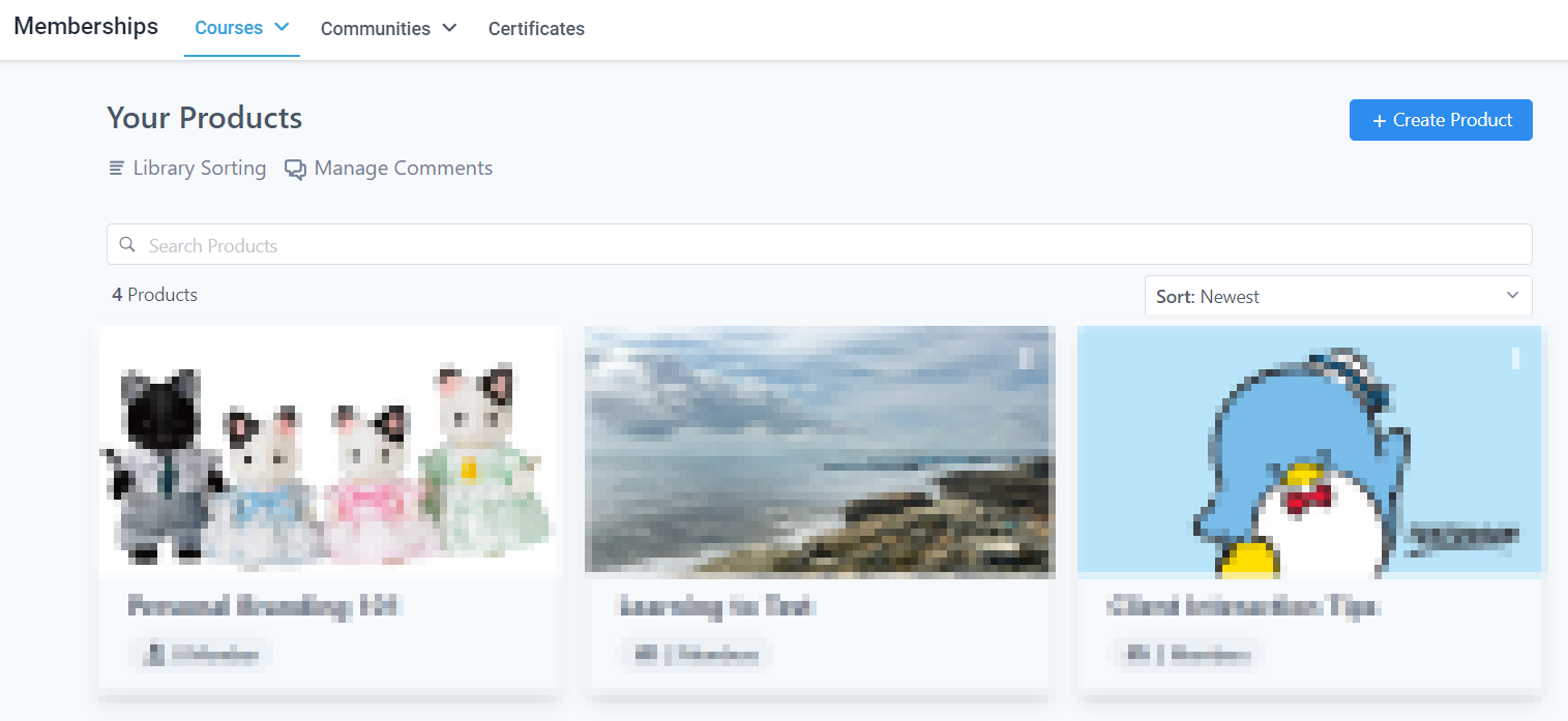 Products allow you to create, see, and manage the courses you're offering.