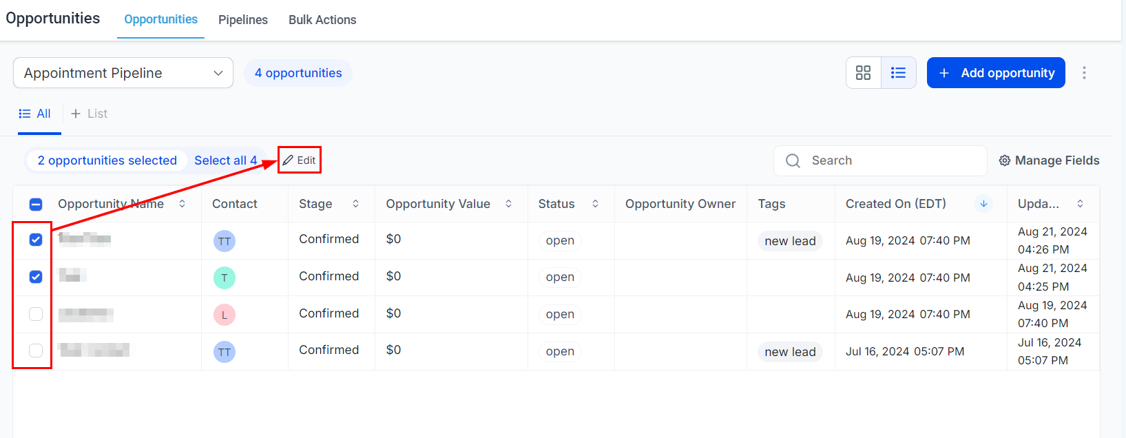 How to Bulk Edit Opportunities