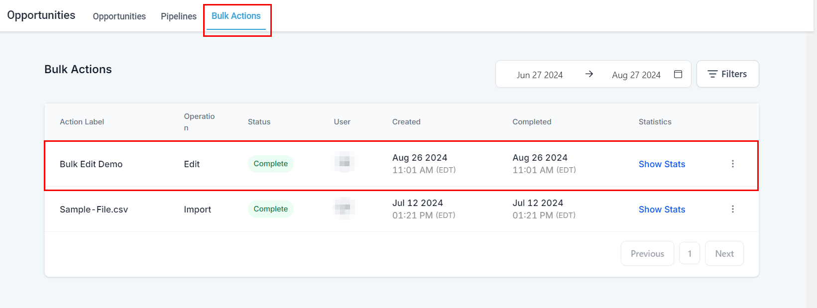 By leveraging these bulk features, you can save time and minimize errors when managing opportunities. Whether you're updating fields, moving opportunities between pipelines, or monitoring progress, these tools are designed to enhance your workflow and keep your data accurate.
