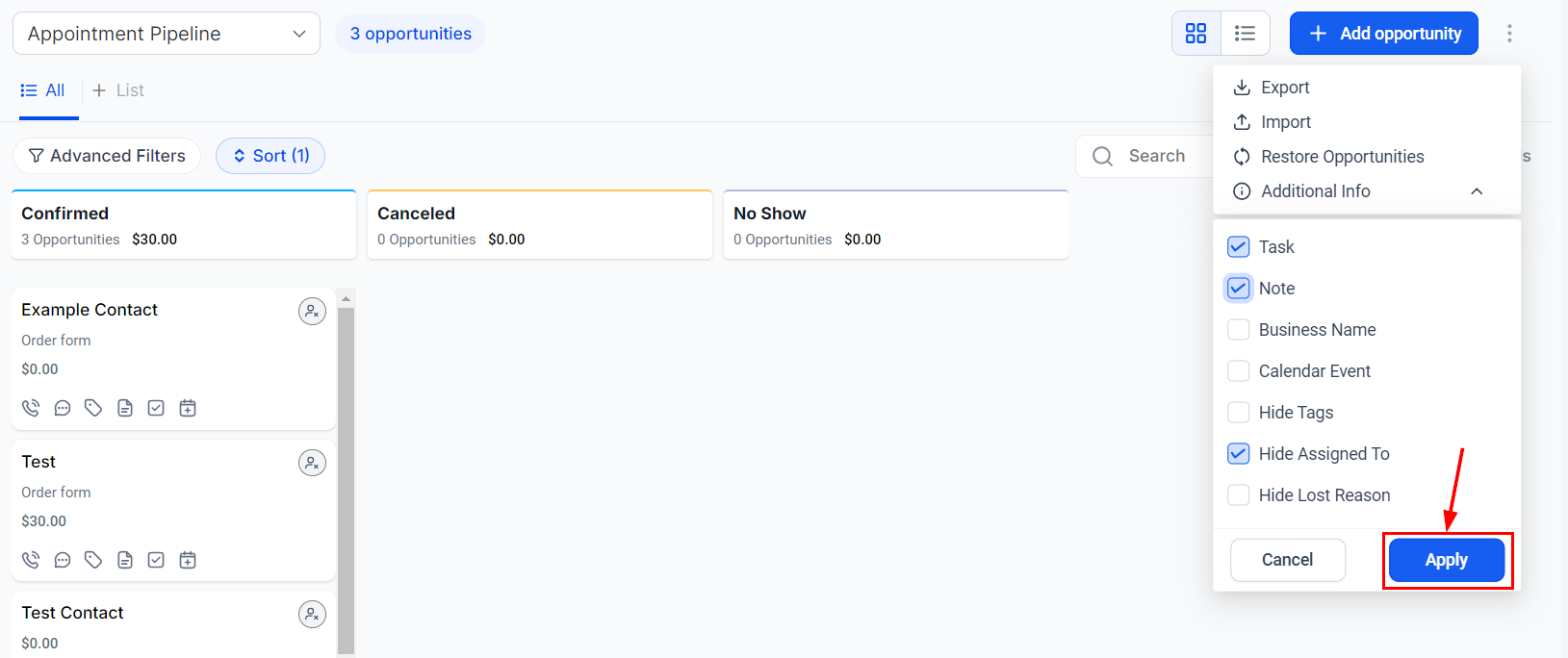 Customizing your opportunity cards allows you to access the most relevant information at a glance, enhancing your ability to manage and prioritize tasks. By following these steps, you can ensure that your Opportunities tab reflects the details most important to your process.