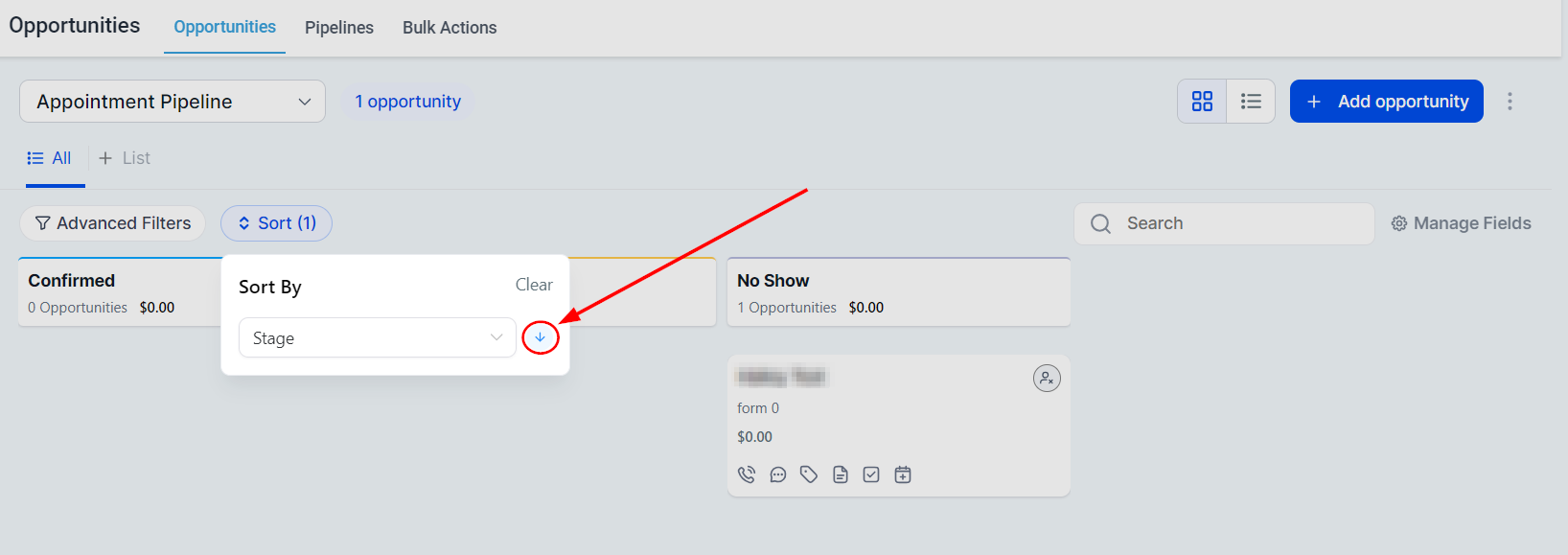 How To Sort/Filter Opportunities