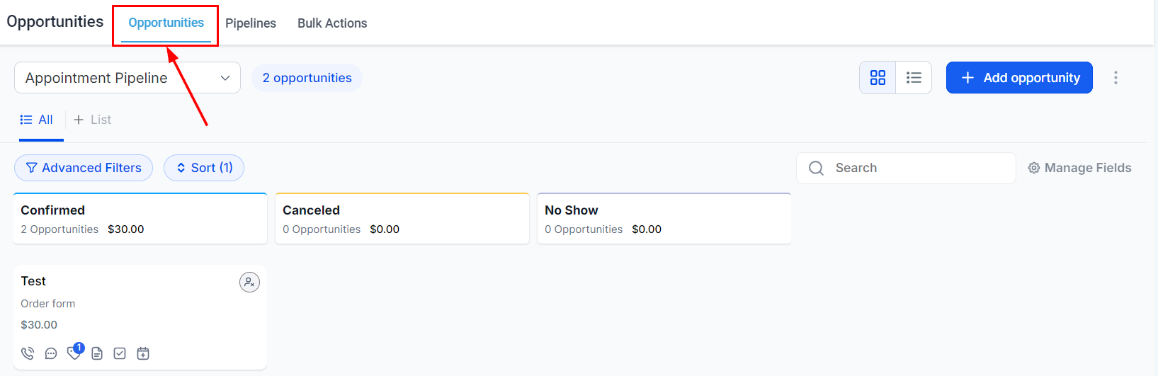 Begin by navigating to the Opportunities section in your account.