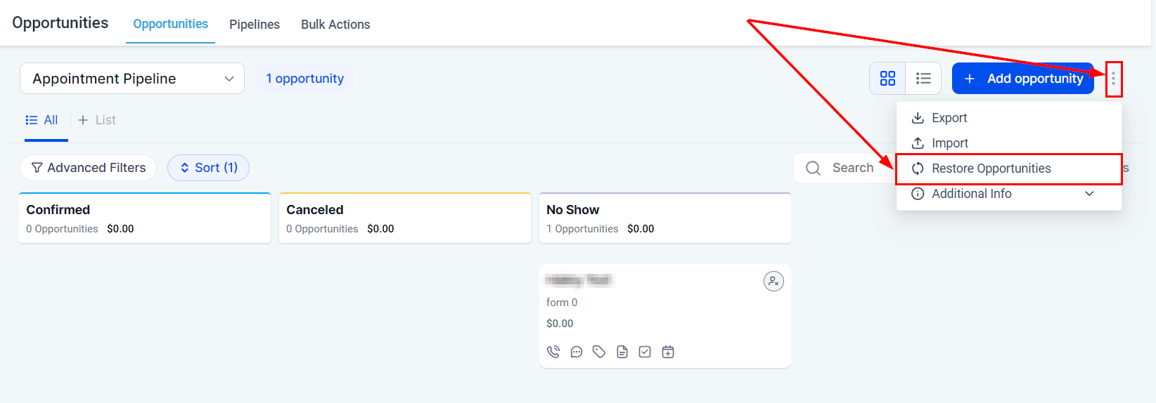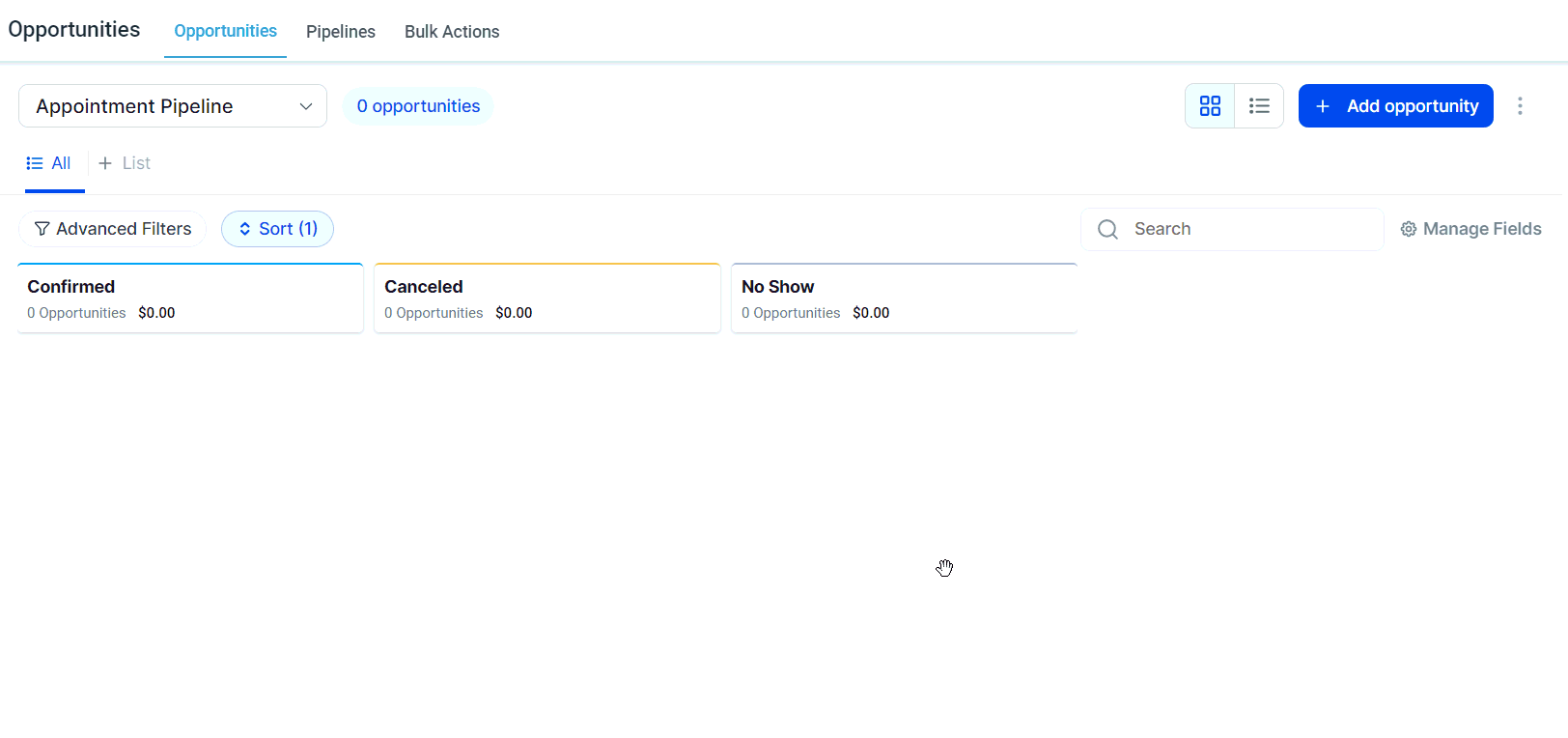 Welcome to the Opportunities tab overview. This section is designed to help you efficiently manage and organize new business opportunities by incorporating them into pipelines, allowing you to monitor their progress throughout the entire sales cycle. Once the pipelines are in place, you can start leveraging this powerful feature to streamline your sales process.