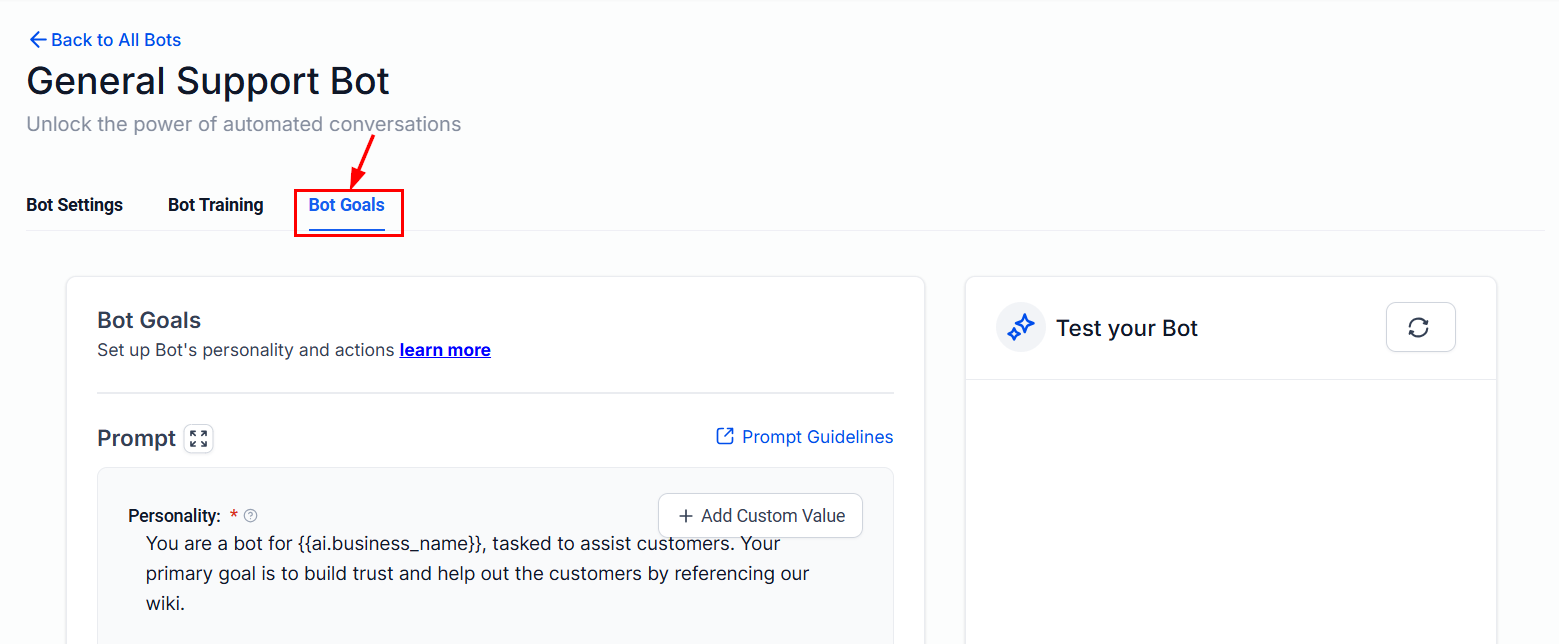 Head to the Bot Goals tab.