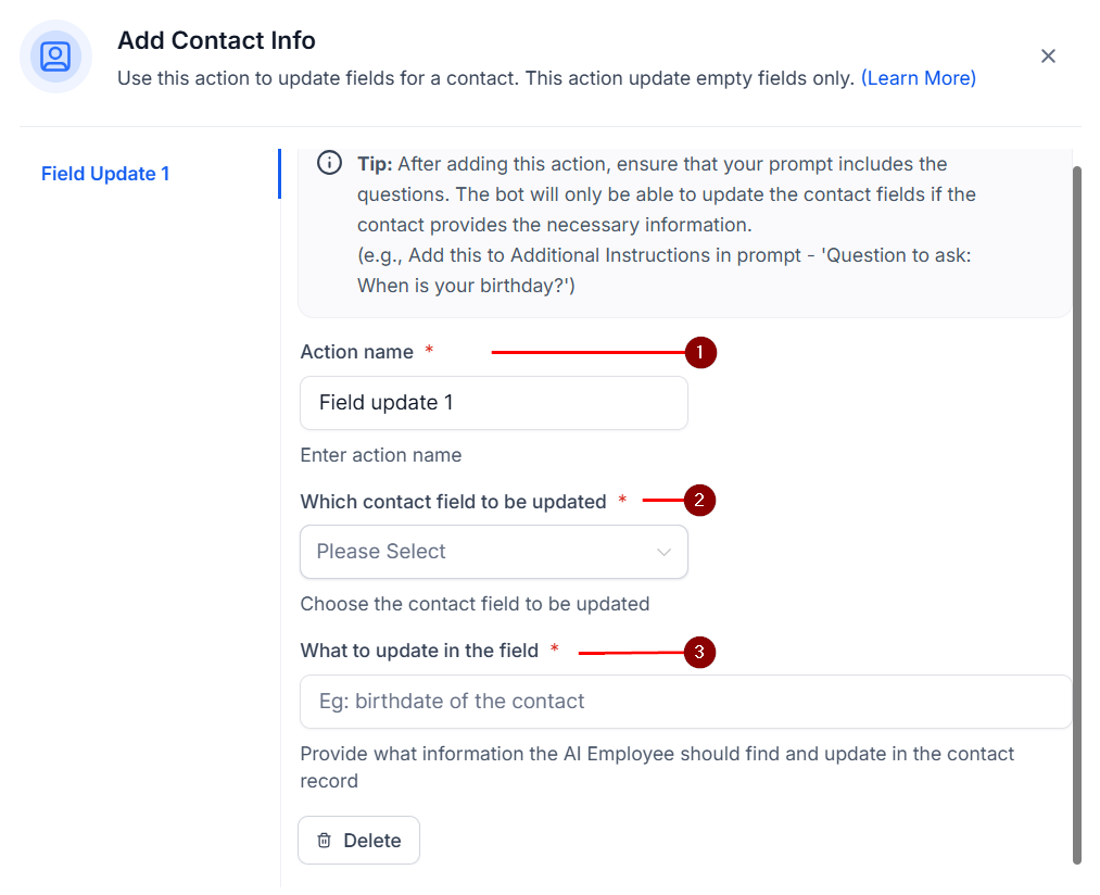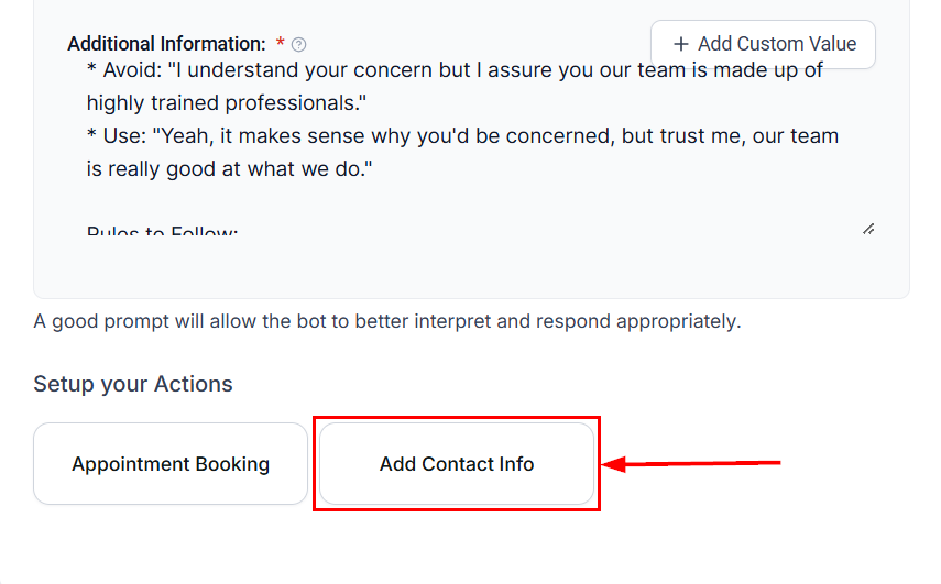 How to Add Contact Info Using the AI Bot