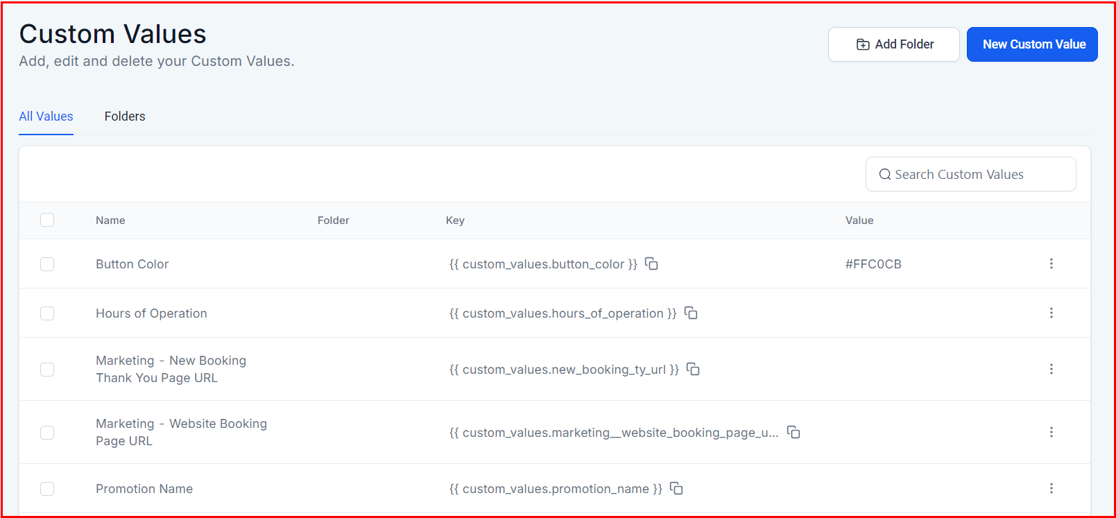 Custom values are a versatile feature that allows you to efficiently manage and reuse key information across your platform. Whether you're setting up company details, promotional offers, or logos, custom values can help maintain consistency across your content. In this guide, we'll walk you through the process of setting up custom values and integrating them into various elements of your platform, such as funnels and marketing emails.