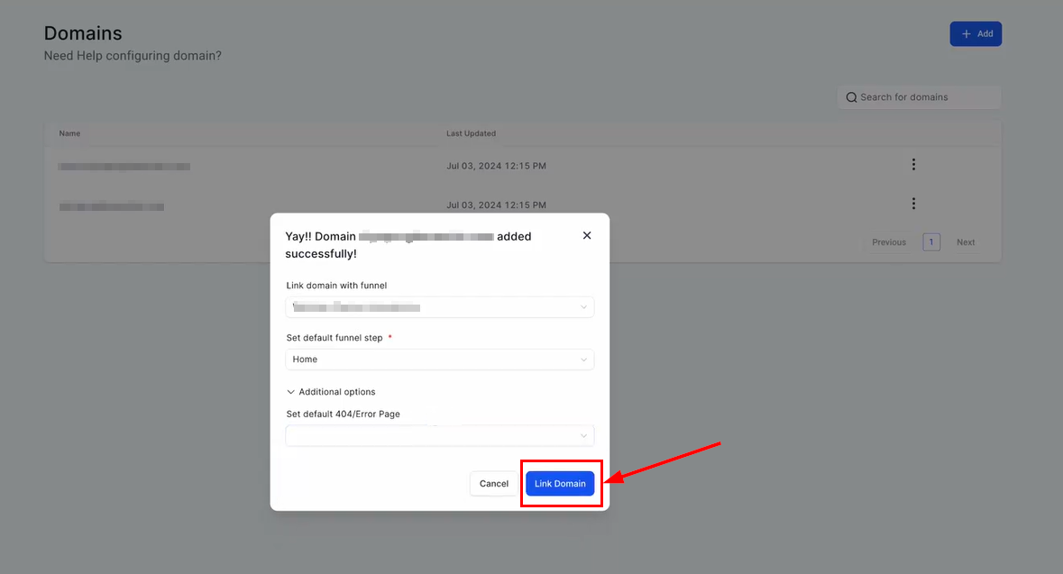 6. Link Domain: Finalize the process by clicking βLink Domainβ.