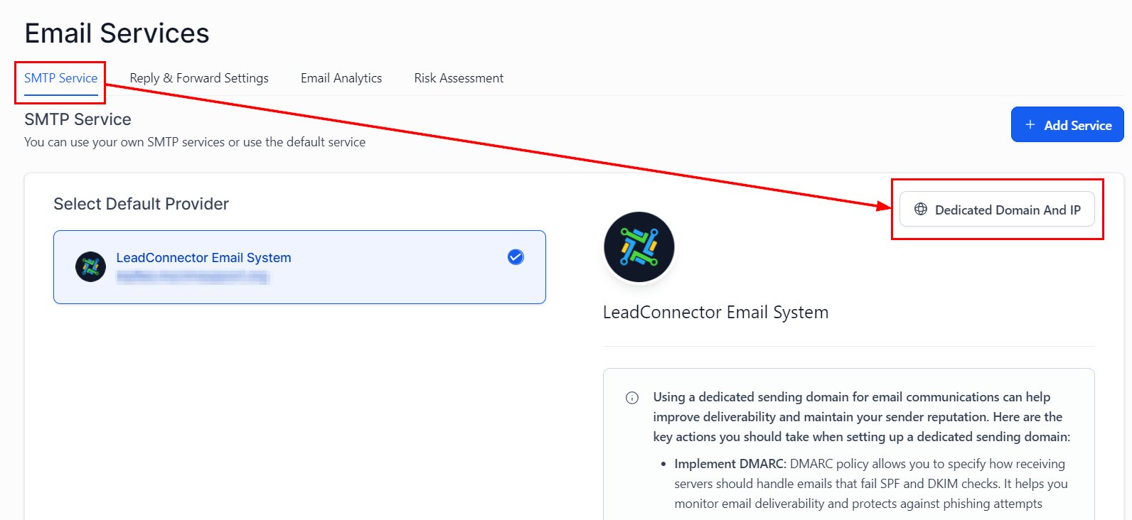 Go to Email Services > SMTP Service > Dedicated Domain and IP within your account settings.
