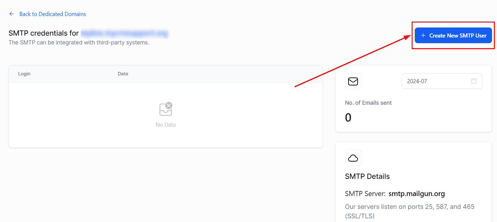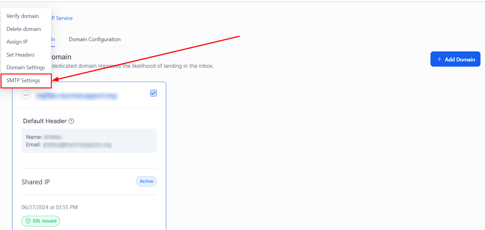 Then, navigate to the SMTP Settings under the dedicated domain.