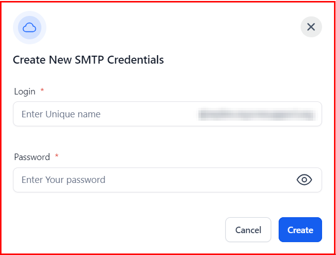Once you've entered the necessary details, click the "Create" button to finalize and save your new SMTP credentials.