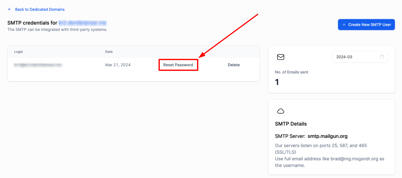 SMTP (Simple Mail Transfer Protocol) is vital for sending emails directly from your domain. To ensure reliable email delivery, it's important to use the SMTP credentials associated with each specific domain. Every domain you add will have its own unique SMTP credentials, which can be managed within your domain settings. Please note that our service does not host mailboxes, so POP or IMAP protocols are not supported. This article will walk you through the steps to create, reset, and delete SMTP credentials, while also outlining the required settings and any associated limitations.