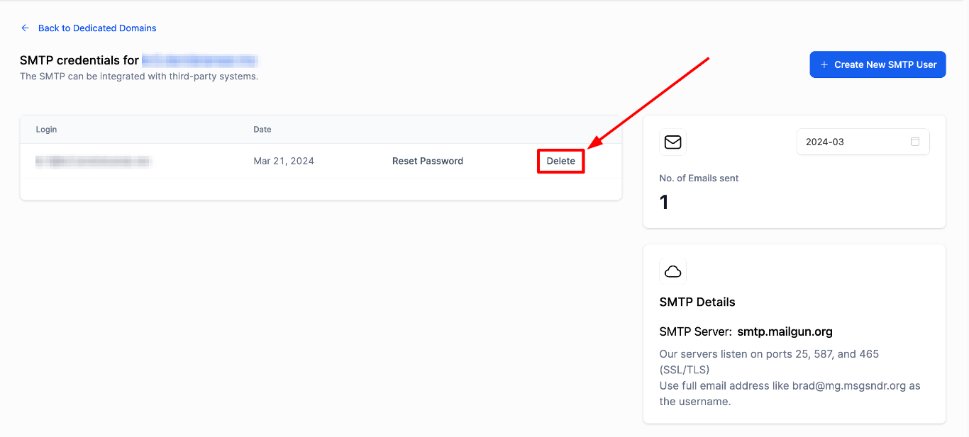 How to Delete SMTP Credential