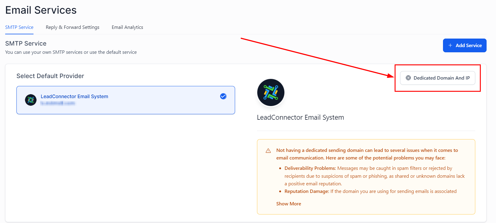 Navigate to Settings -> Email Service.