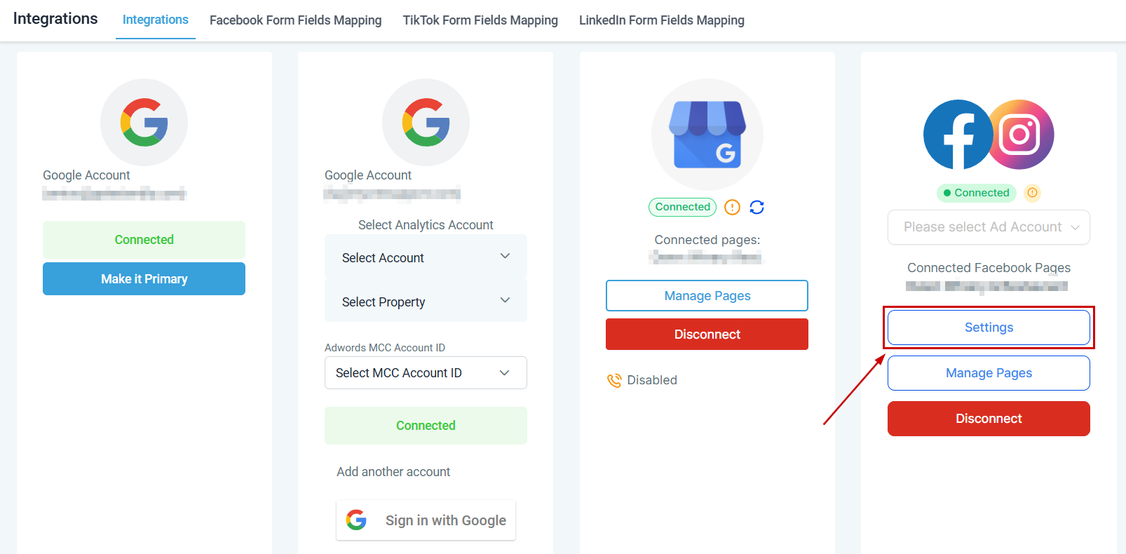 Integrating your Facebook and Instagram accounts enhances your social media management and improves your ability to track and engage with leads effectively. This process ensures that your accounts are synchronized and fully connected, allowing for seamless interaction and efficient data management. Follow the steps outlined below to establish and manage this integration, ensuring that your social media activities and lead data are consistently updated and accurately reflected in your CRM.