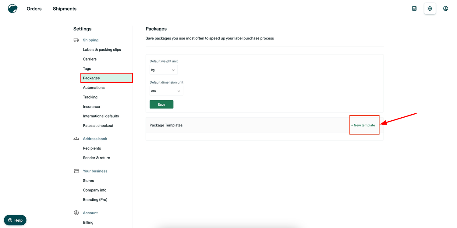 Step 2: Configure Package Templates & Shipping Options in Shippo