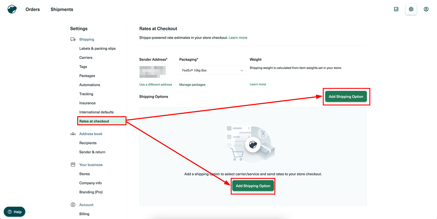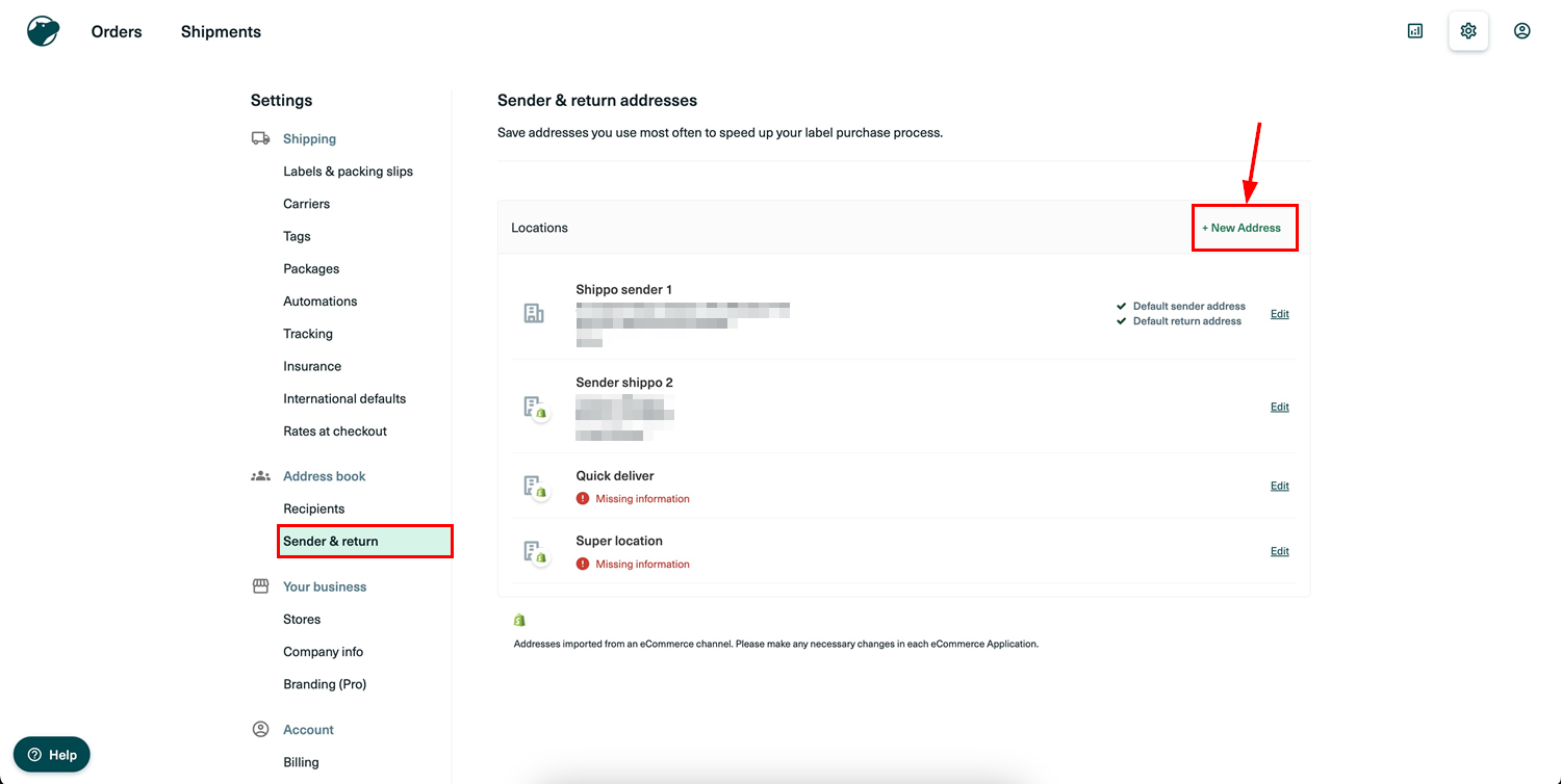 Setting Up the Shipping Origin: Define the sender and return addresses by going to Settings > Address Book > Sender & Return > Add New Address. Enter the complete address and select it as the default if required.