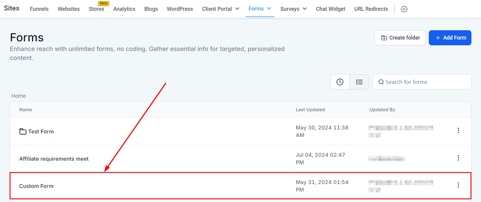 Navigate to the Form Builder: Access the section of the CRM where you create and manage forms.