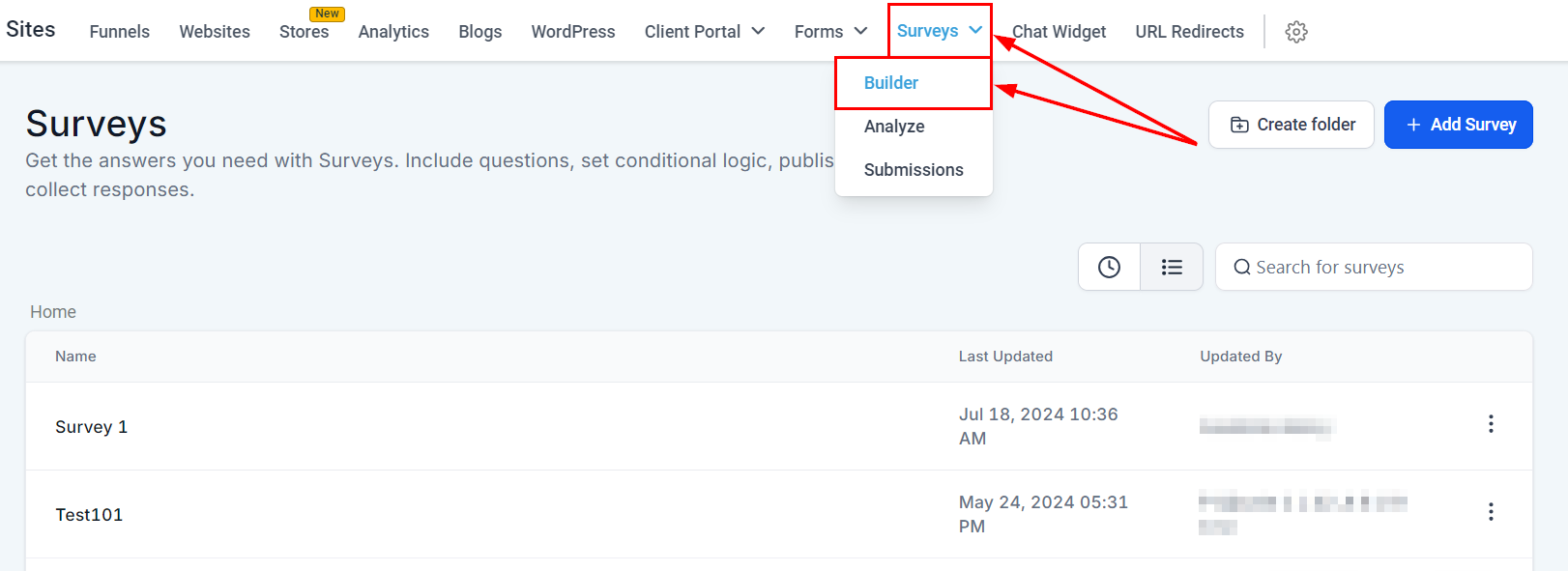 Go to the Survey Builder: Locate the area in the CRM where surveys are created and edited.