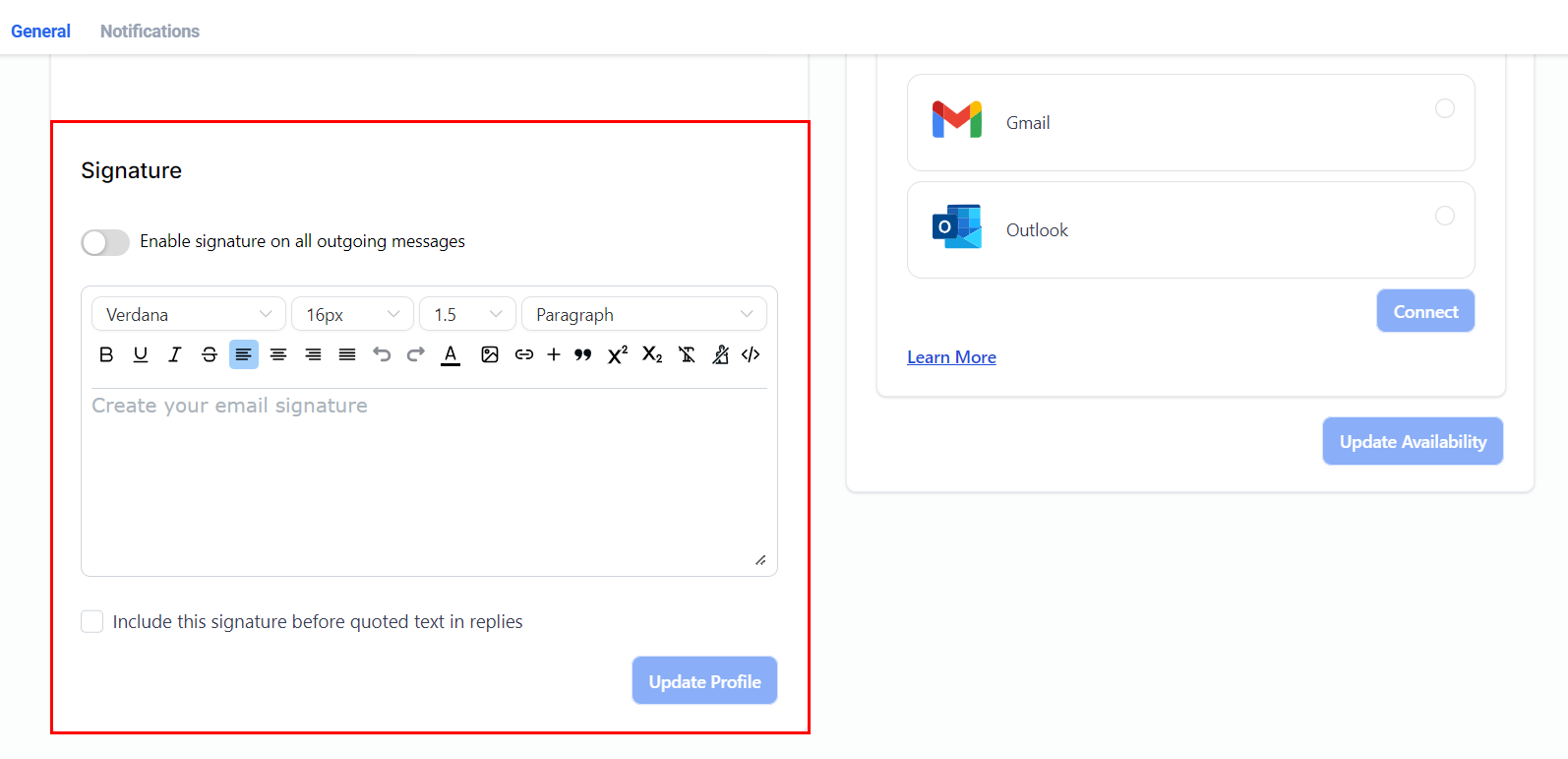 Furthermore, you can create a custom email signature for emails sent from your account when communicating with customers and leads.
