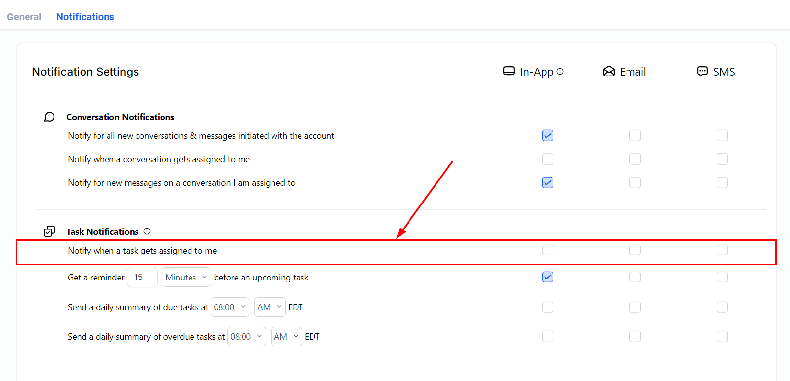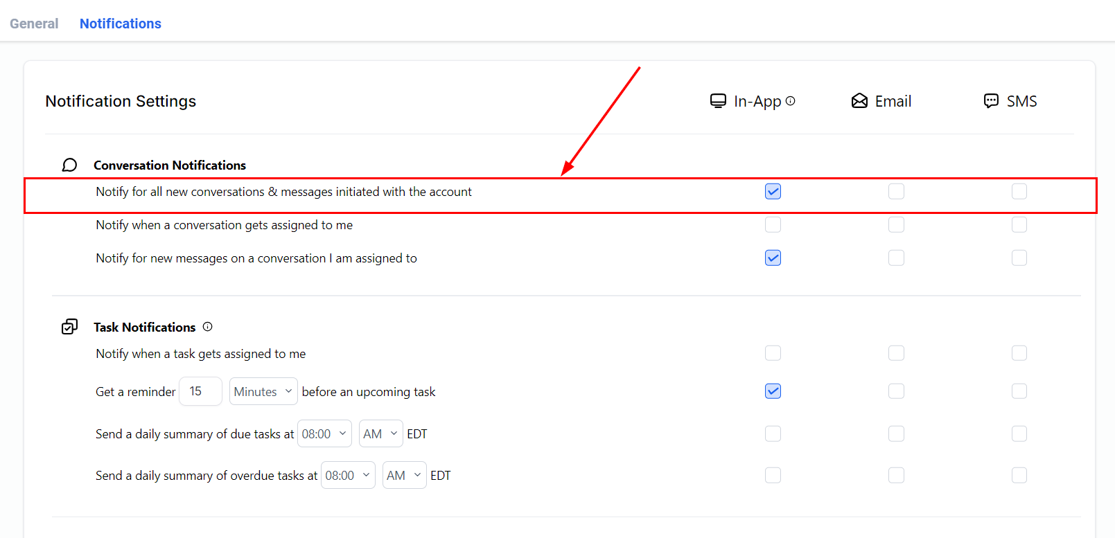 When enabled, the option to notify when conversations are assigned to you can keep you up to date with your tasks. With this feature, you can get an alert promptly delivered right to your preferred channel.
