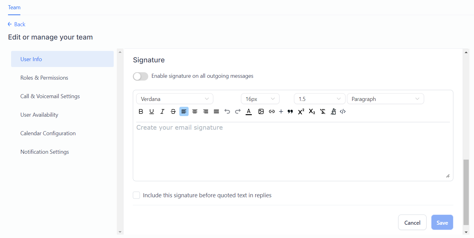 You can establish an email signature for each user, which can be helpful for the campaigns they are assigned to.