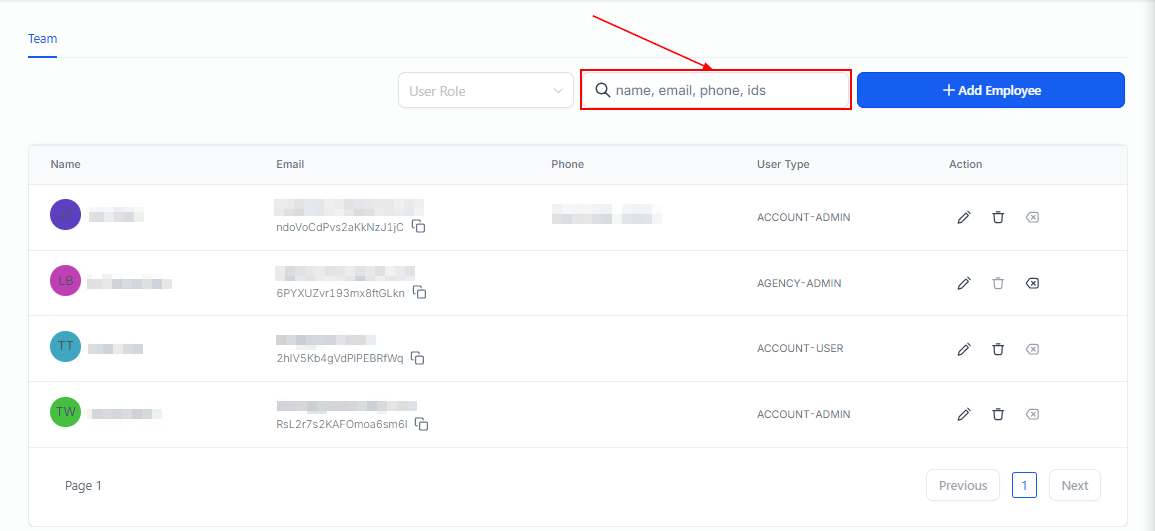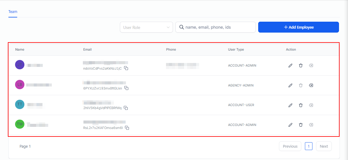 Upon navigating to the page, you'll be presented with a comprehensive list of team members who possess access to the account. This includes essential information such as their name, email address, and contact number, providing an easy-to-view overview of your colleagues and their associated details.