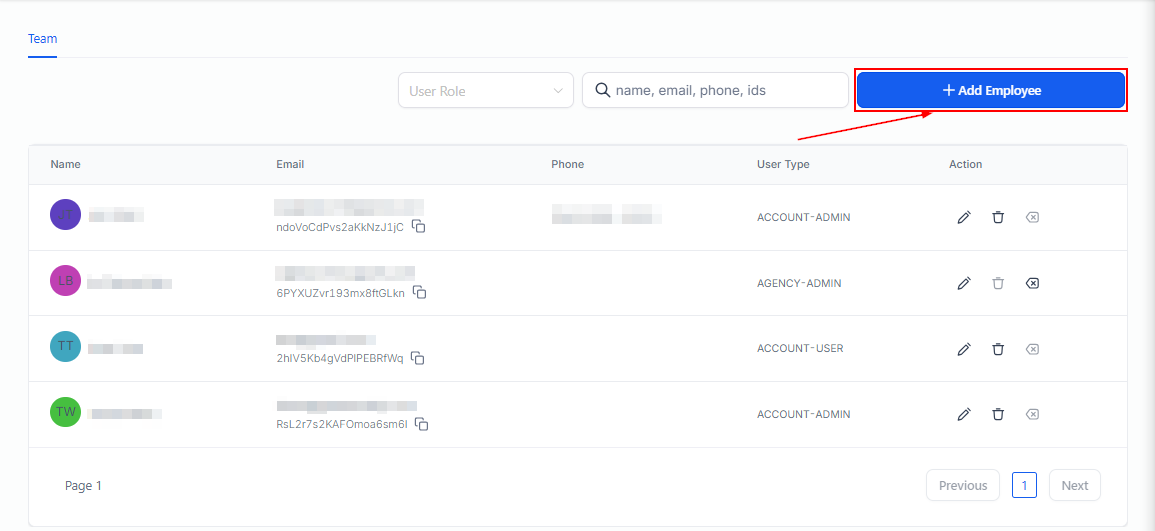 To add a new employee, click on the Add Employee button.