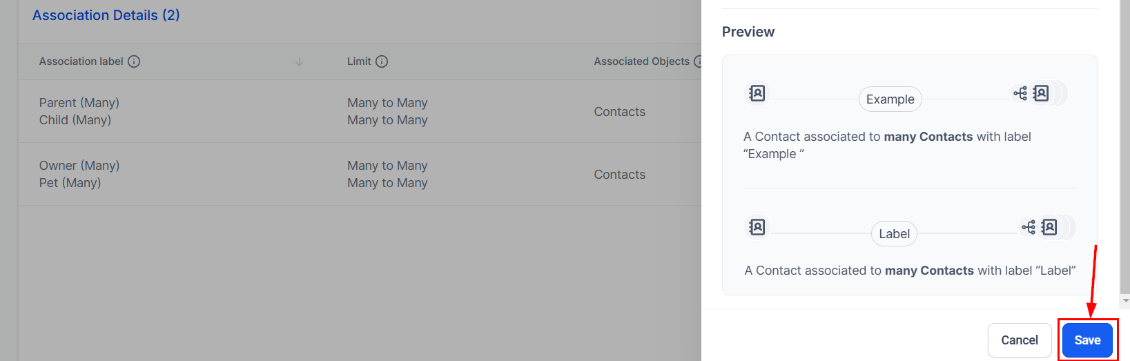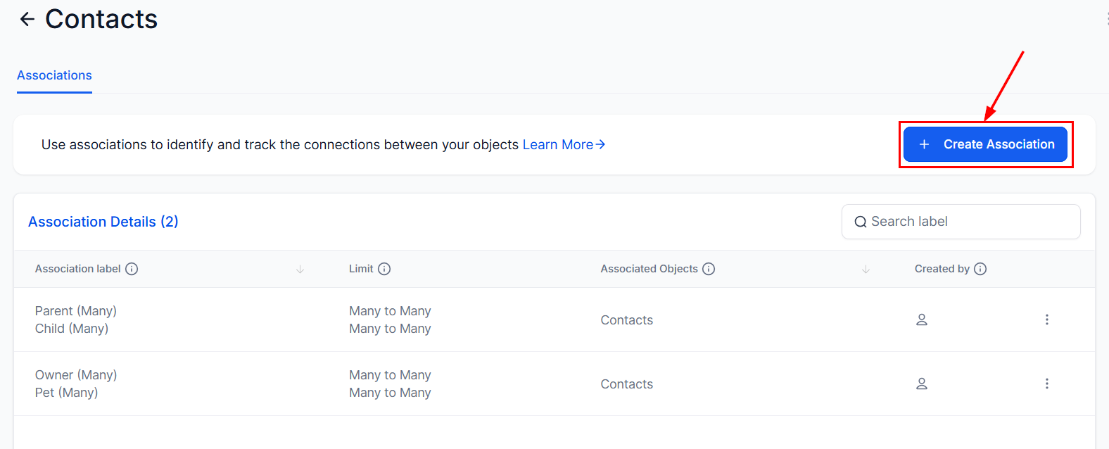 Manage Association Labels: Users have full control over their association labels, enabling the creation of new labels, as well as the ability to edit or remove existing ones, ensuring complete flexibility in managing contact relationships.