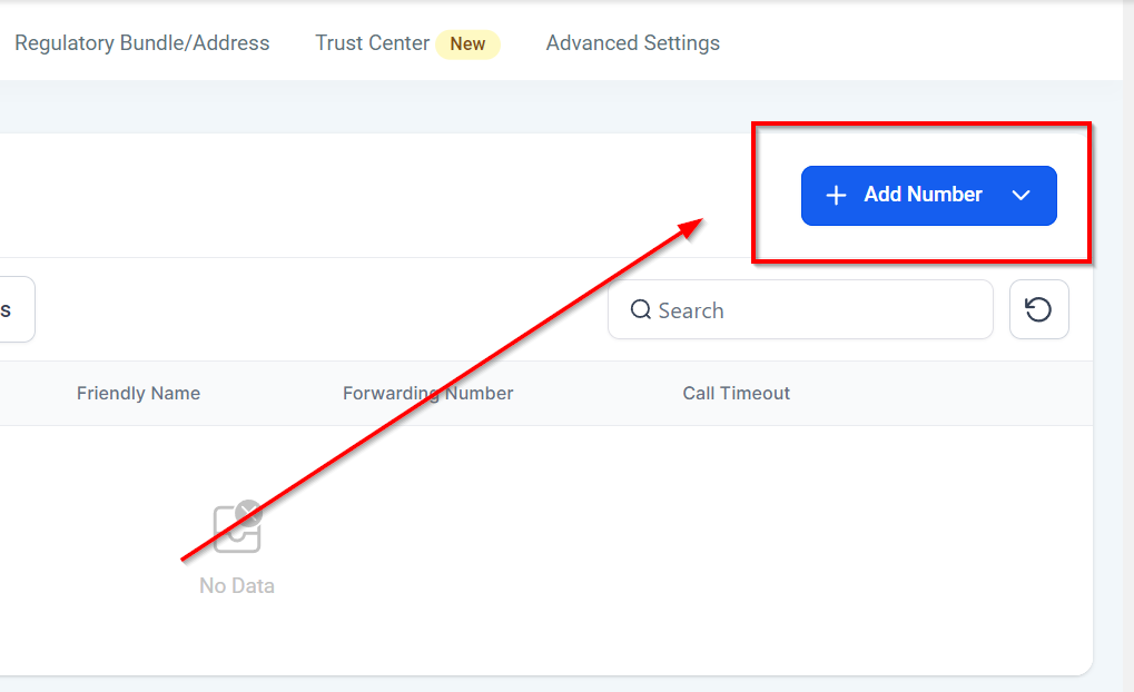Go to the Settings section of your system and head over to the Phone Numbers section. If you have not added a phone number, click on + Add Number to do so.