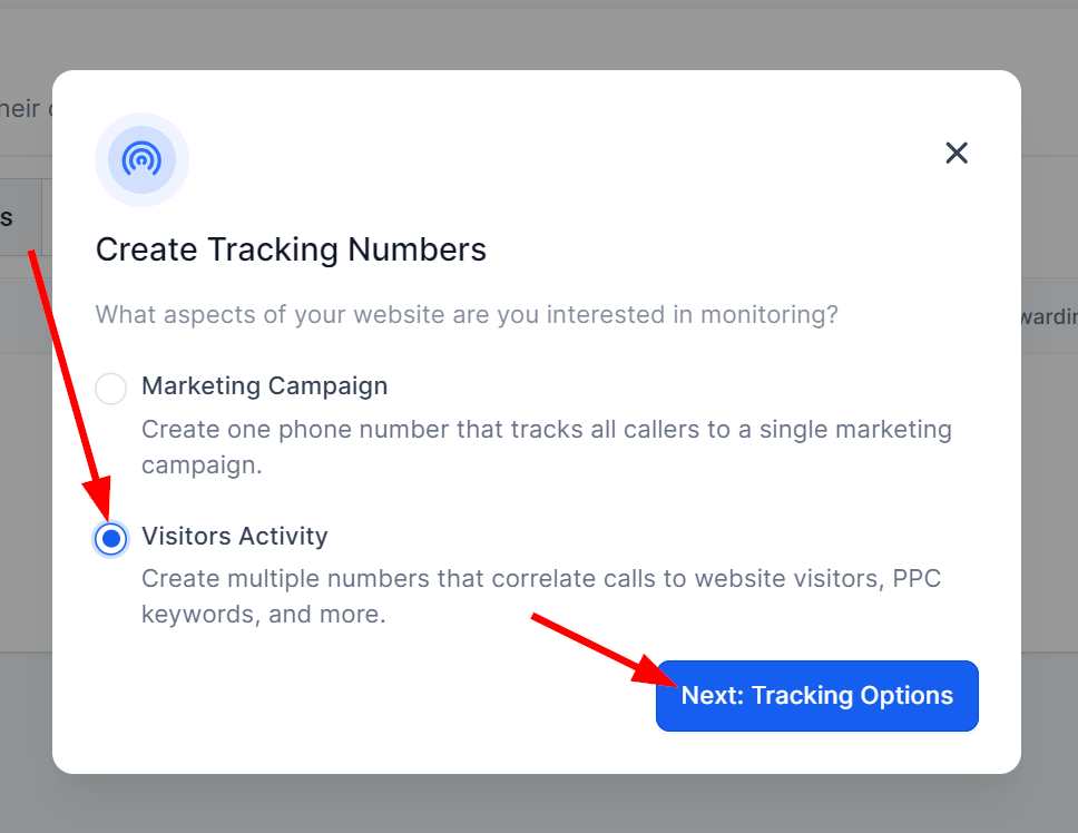 Add Number Pool: Click on 'Add Number Pool' and then 'Track Visitor Activity'.