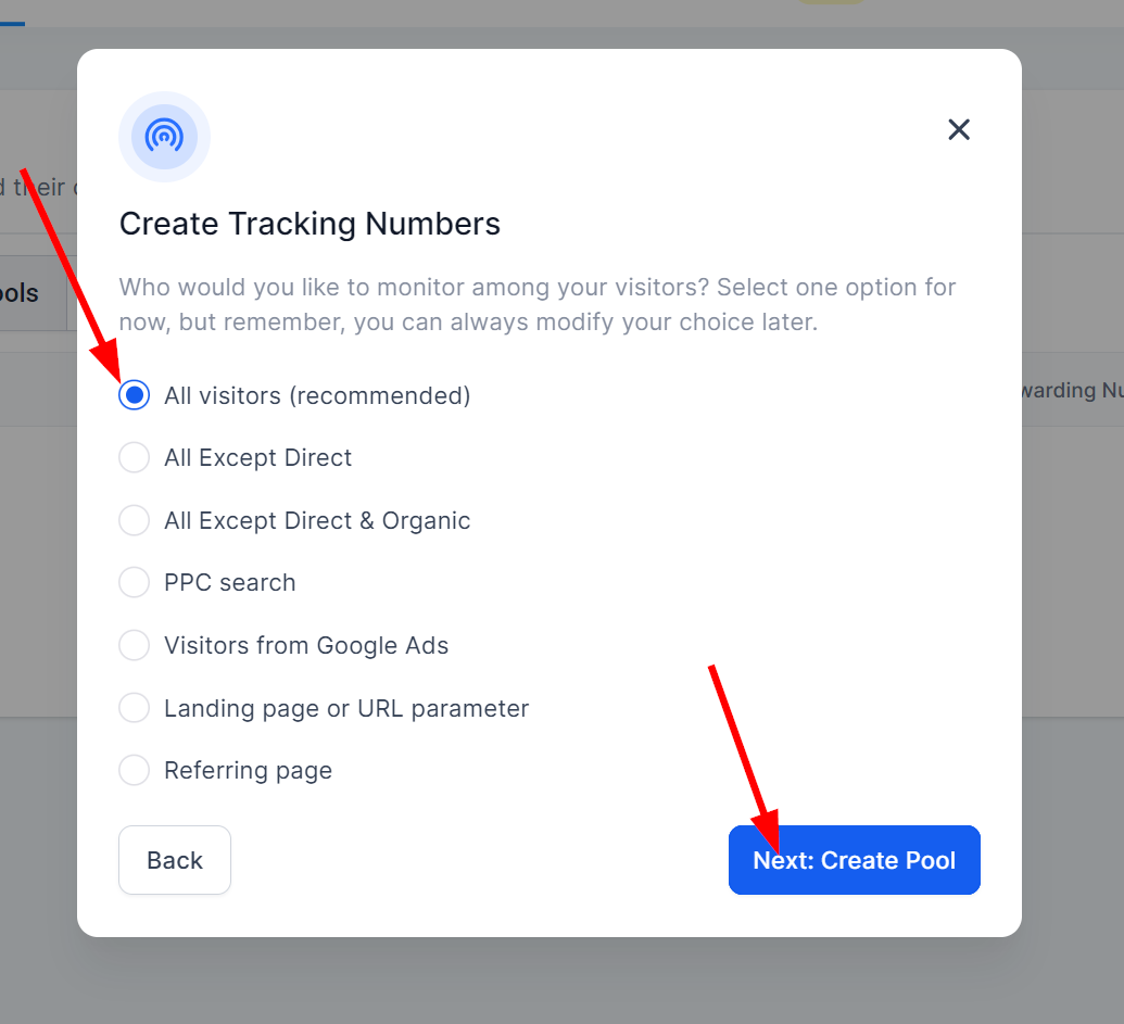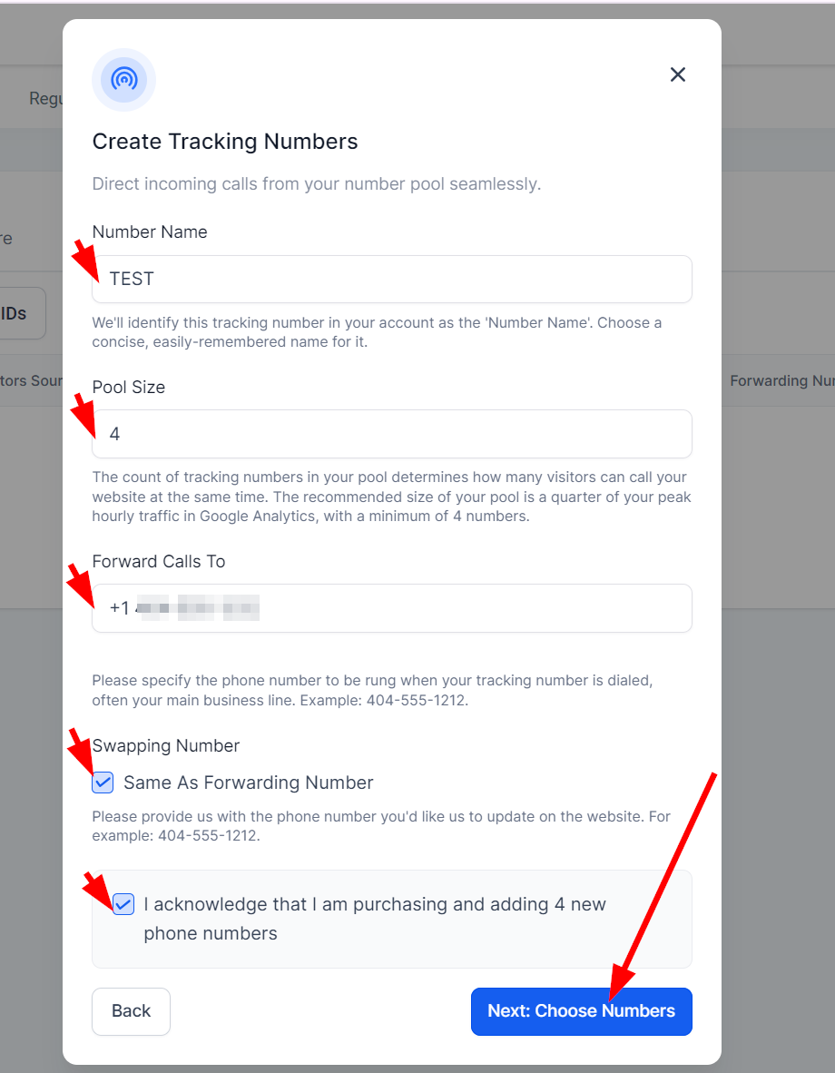A number pool allows you to track visitor activity by creating multiple tracking numbers. Here's how to create one: