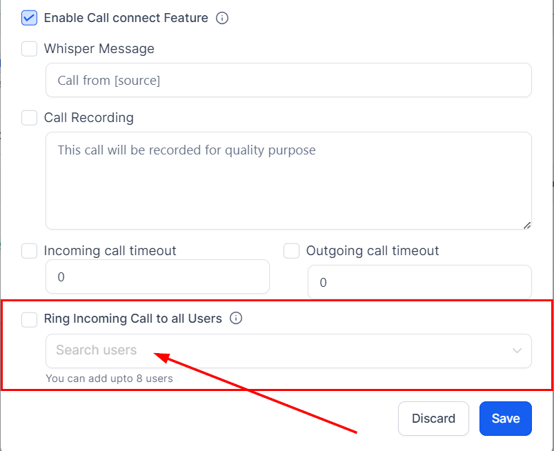 4. Activate Ring to All Users: Find the setting 'Ring Incoming Call to All Users' and enable it.