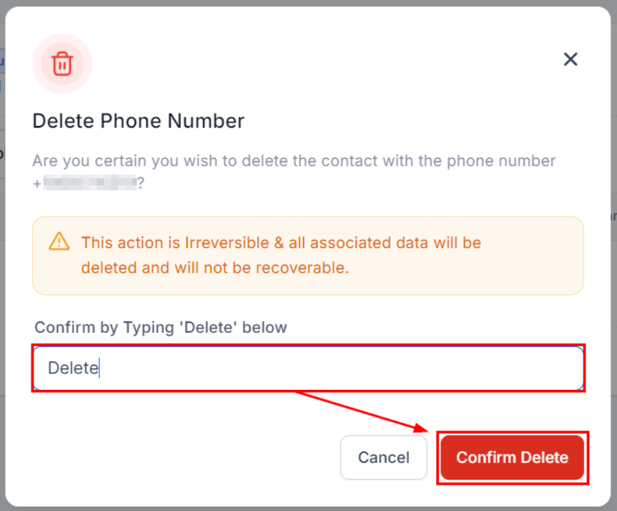 Once you're in the "Phone Numbers" section, you'll notice each number has a corresponding trash icon. Click the three dots button next to the number you wish to remove. A confirmation prompt will appear, asking you to type "delete" to confirm the action. This icon is used to remove a Twilio number from your account.