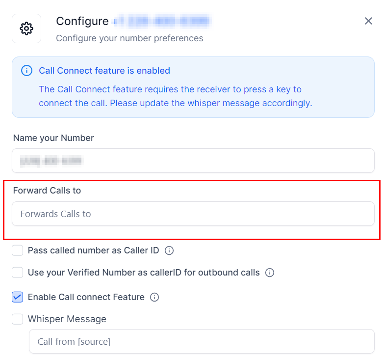 Set up or verify the forwarding number to which unassigned calls should be directed.