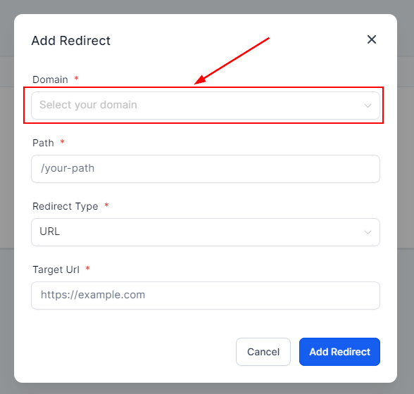 Here you will see the list of domains connected to your CRM location. Select the domain which you want to redirect from the dropdown.