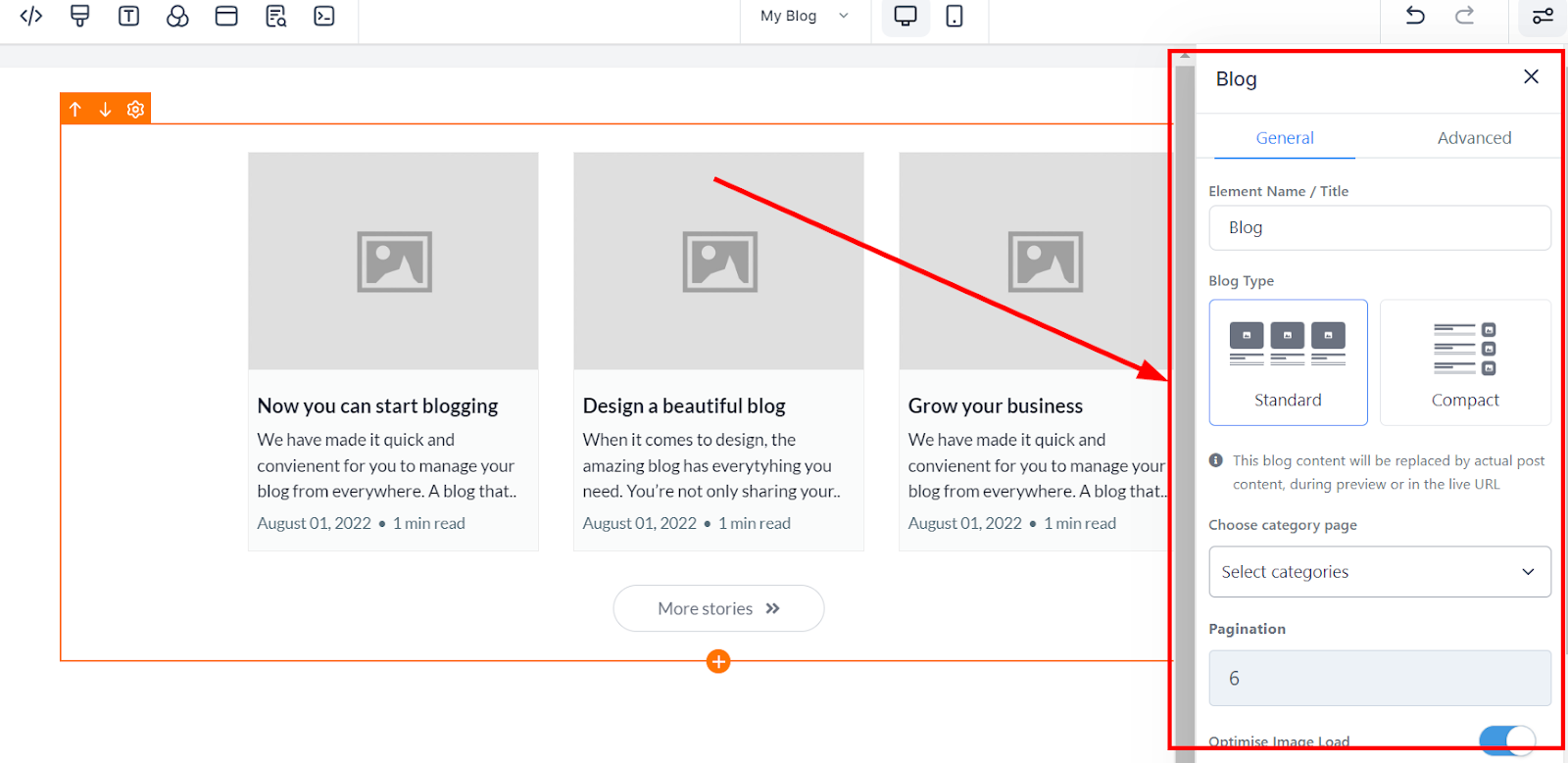 Set Pagination to control the number of blog posts displayed on the page.