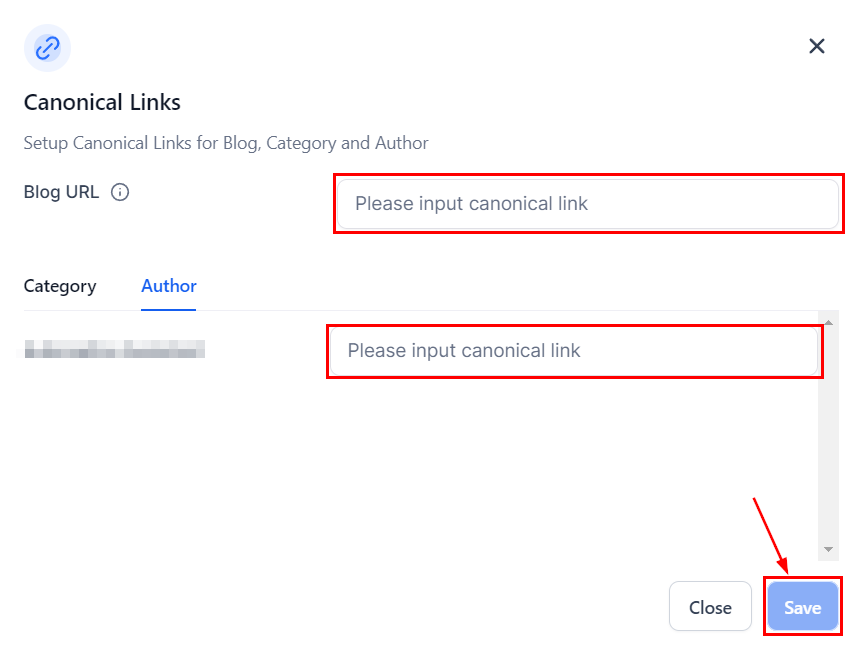 After clicking on Canonical Links a pop-up window will show for you to set each canonical link, once you do so click Save to keep the changes.