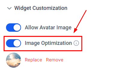 If using a personalized image for your Avatar you can also enable Image Optimization to ensure the speed and quality of it for your website visitors.