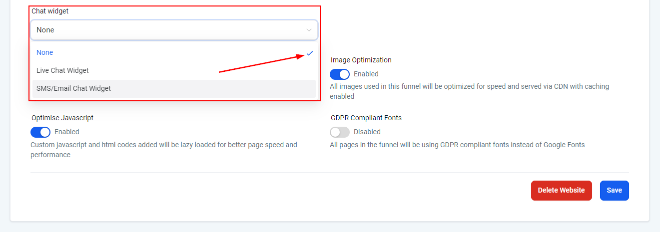 Once the Chat Widget is selected click Save to make it live. This will add it to your Funnel/Website according to its settings.