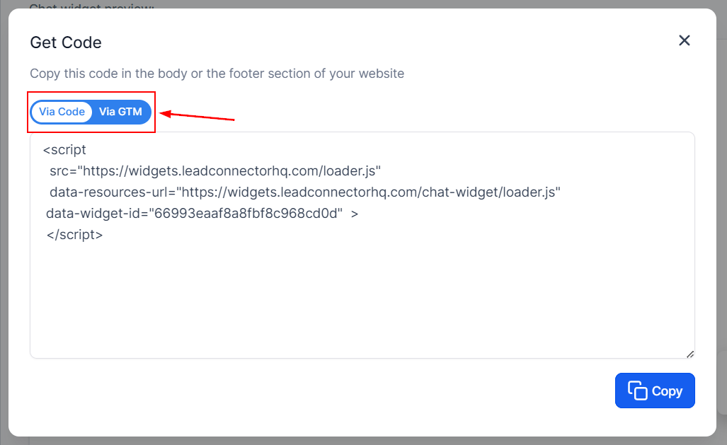 With the pop-up, you can choose how to install this code. Whether you'd like to use Google Tag Manager or raw code.