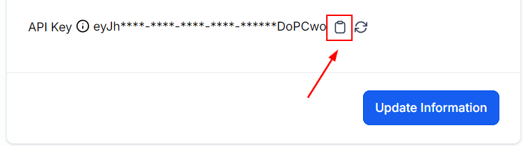 Once generated click on the clipboard icon to copy your API key.