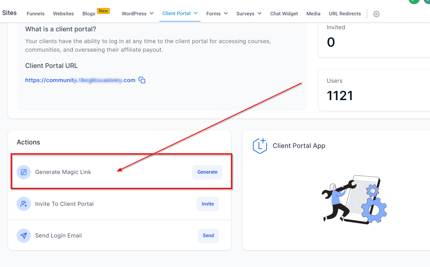 Generate magic links to allow your contacts to access the client portal directly without the need for manual login. Magic links are especially useful when shared via email or messages, providing instant access to the portal.