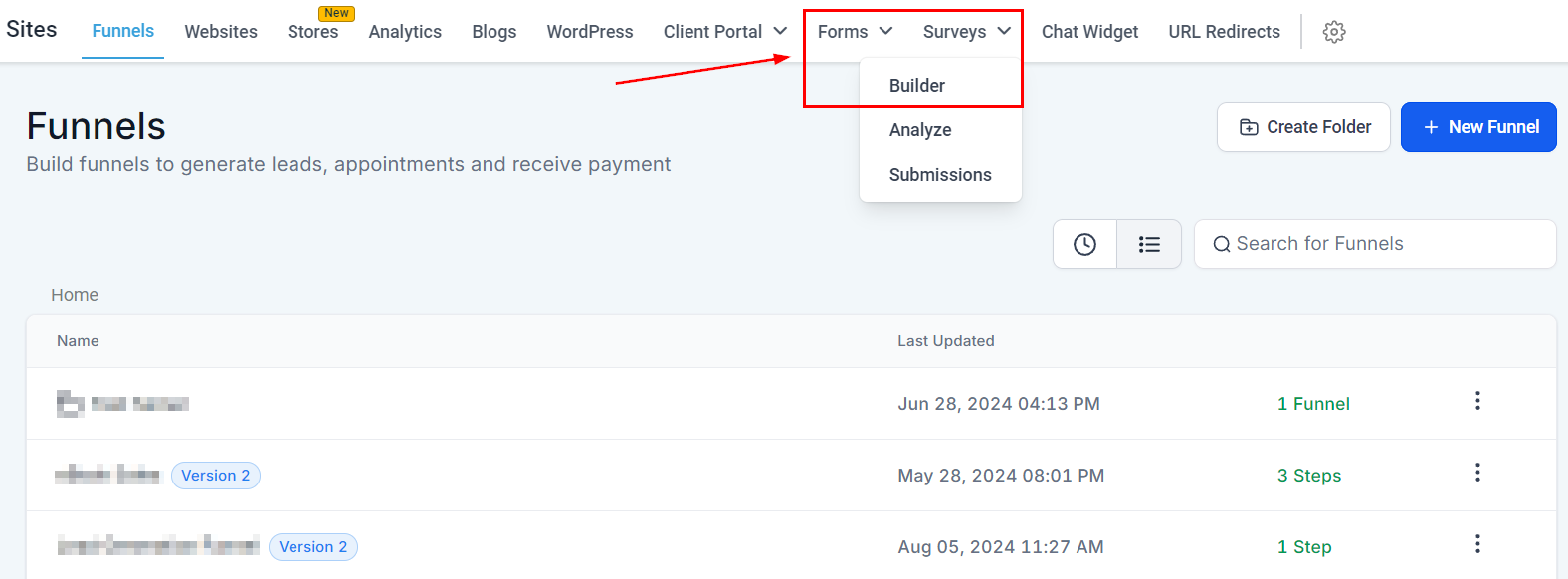 Navigate to the Form/Survey builder inside the Sites section.