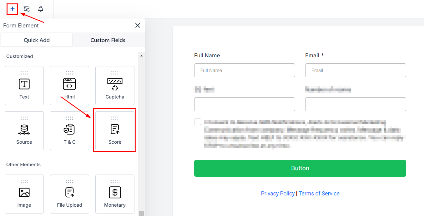 Inside the Builder, click the plus sign button to open the elements and select the Score element.