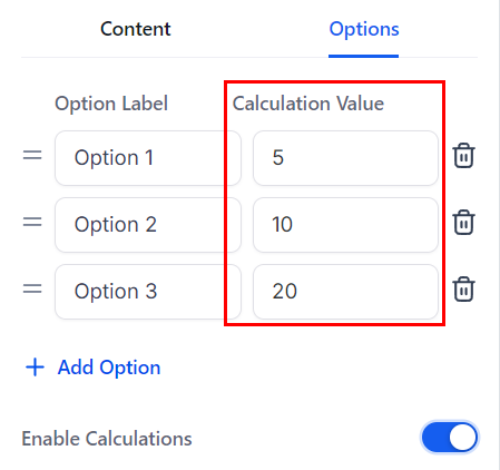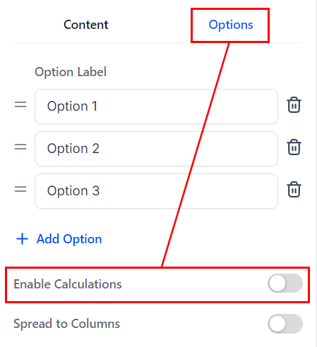 Click on the added element and go to the Options section where youβll toggle Enable Calculations.