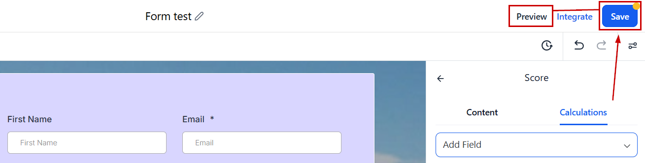 Click Save to keep the changes, then click Preview to see real-time calculations as data enters.